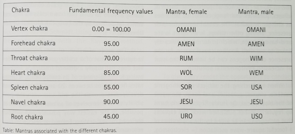 Posted on 21 10 月, 202023 6 月, 2021 by Goldman Au — Leave a comment脈輪的生物共振頻率 脈輪(Charkas)描述了身體所謂的能量轉換中心。 男女的脈輪位置和旋轉方向如下圖: 另外,脈輪可以用相關的基頻值激活,如下表: 文章導覽Previous post: 椎骨的生物共振頻率Next post: 生物共振技術在獸醫中的應用 發佈留言 取消回覆很抱歉,必須登入網站才能發佈留言。